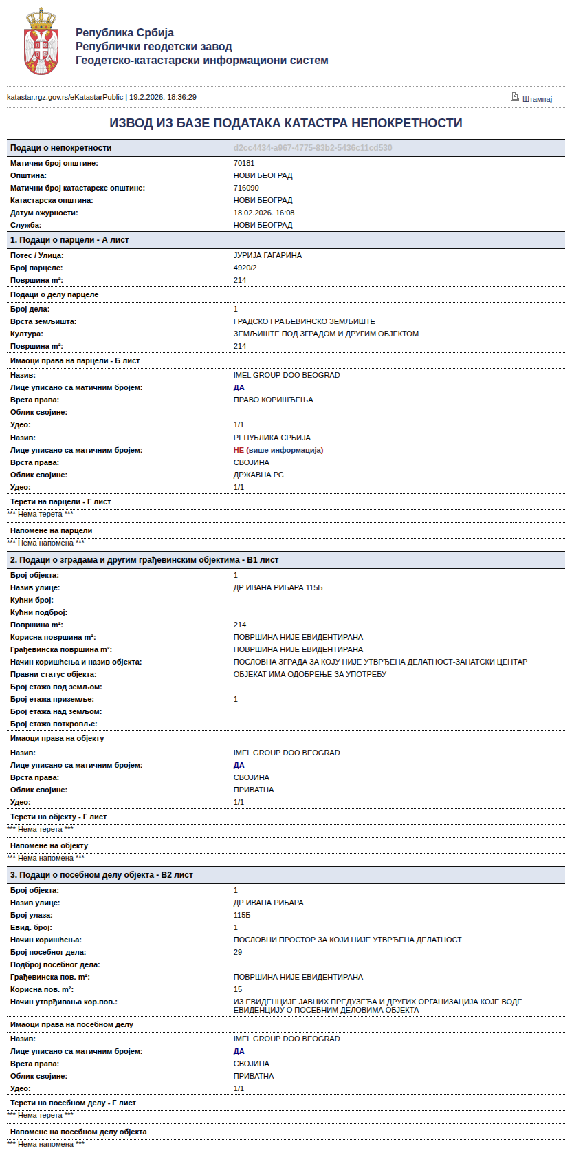 Iako ovaj deo ne pokazuje ko je vlasnik stana, on potvrđuje na kakvom zemljištu se objekat nalazi.